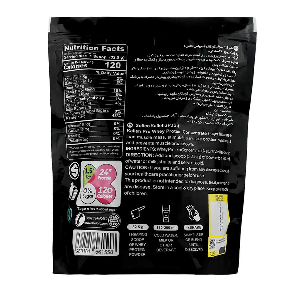 پروتئین وی ۱۰۰ درصد ۶۵۰ گرمی با طعم وانیل